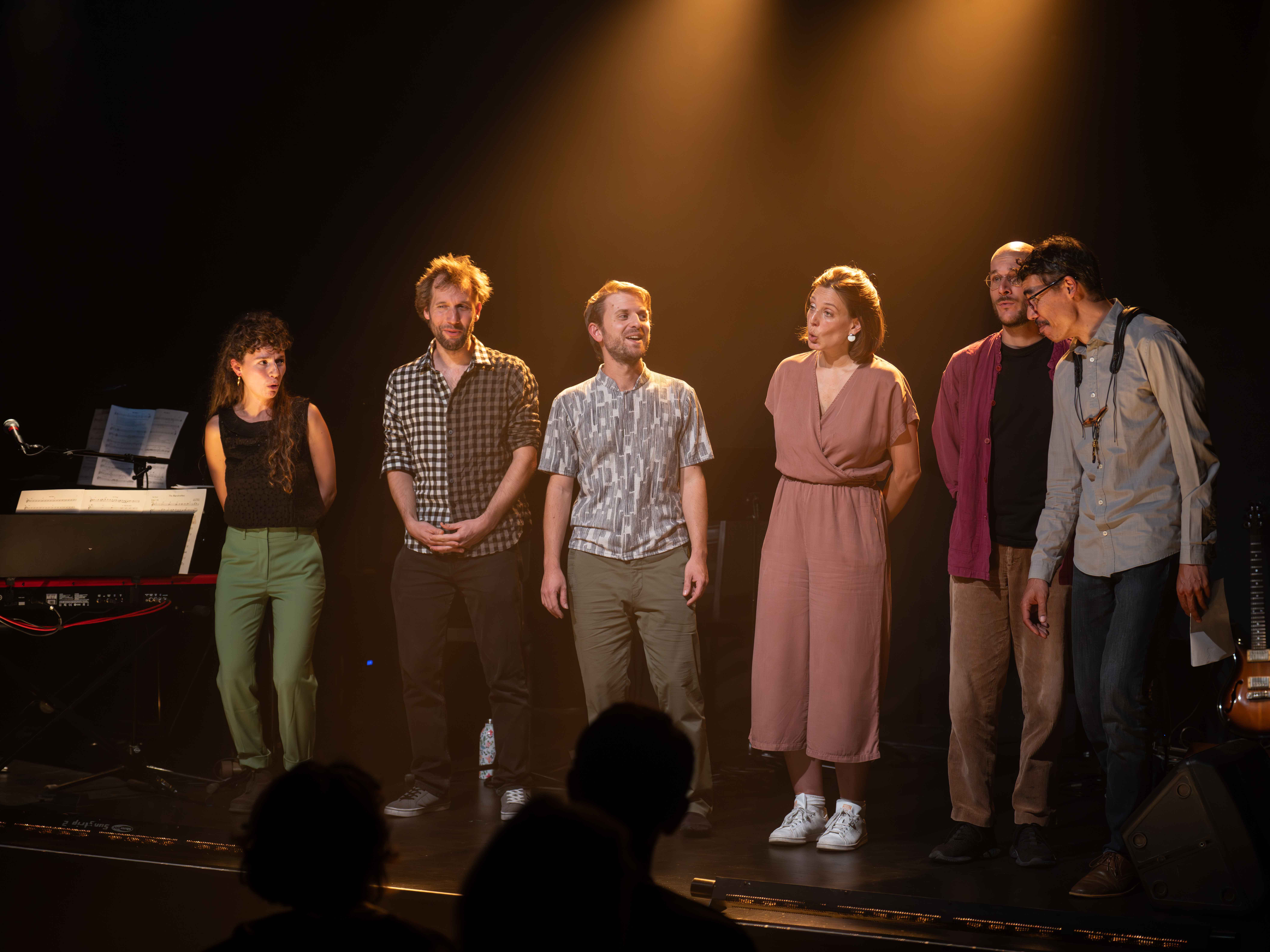 Les pièces composées pour Ancestral Limbo ne sont pas seulement des chansons. Aux mélodies écrites sur le texte répondent des paragraphes à dire, à déclamer, à chanter librement - un art dans lequel excellent Emmanuelle Bonnet et Joanne Gaillard. Les autres membres du groupe ne sont pas en reste. Ils pratiquent tous le chant à côté de leur instrument, et ont répondu avec enthousiasme à la proposition d’un groupe où chacun·e est appelé à utiliser un micro, de manière parfois inhabituelle. Ces six voix rendent en effet de nombreuses choses possibles, comme dans « Le livre des prénoms », dont le seul texte est un vaste répertoire de prénoms...